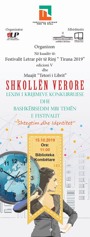 Aktivitete • Aktivitete të përditësuara • Kalendari i Aktiviteteve • Kalendari i Aktiviteteve të Parashikuara Ftesë -Zhvillohet takim letrar, si pjesë e Shkollës Verore , në mjediset e Bibliotekës Kombëtare, Ju mirëpresim më datë 15.10.2019 në orën 11.00, në mjediset e Bibliotekës Kombëtare, për të realizuar një takim letrar, pjesë e Shkollës verore.